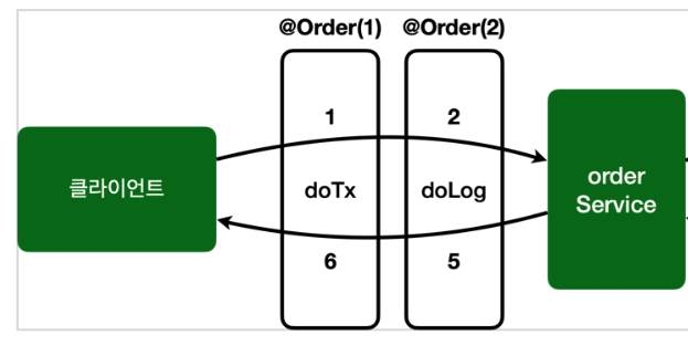 - @Aspect 적용 단위로 @Order annotation을 지정해야 합니다.